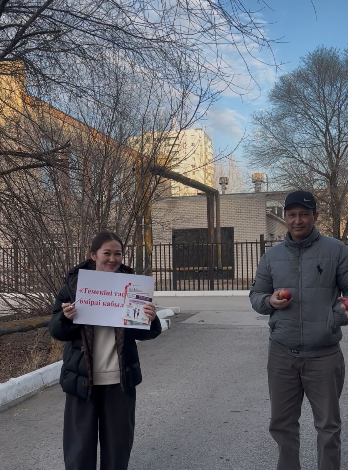 🍎 Акция барысында тұрғындарға темекіні тастап, оның орнына пайдалы жеміс – алма ұсынылды.